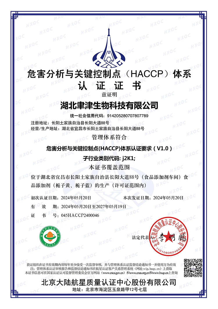 危害分析与关键控制点(HACCP)体系认证证书